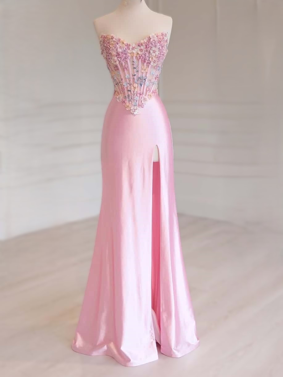Blush Pink Strapless Prom Dress with 3D Floral Corset