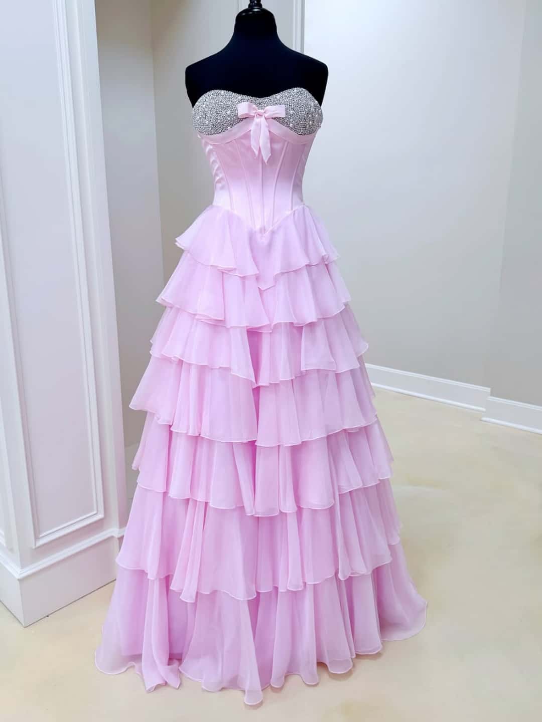 Diamond Corset Bodice Tiered Prom Dress with Bow