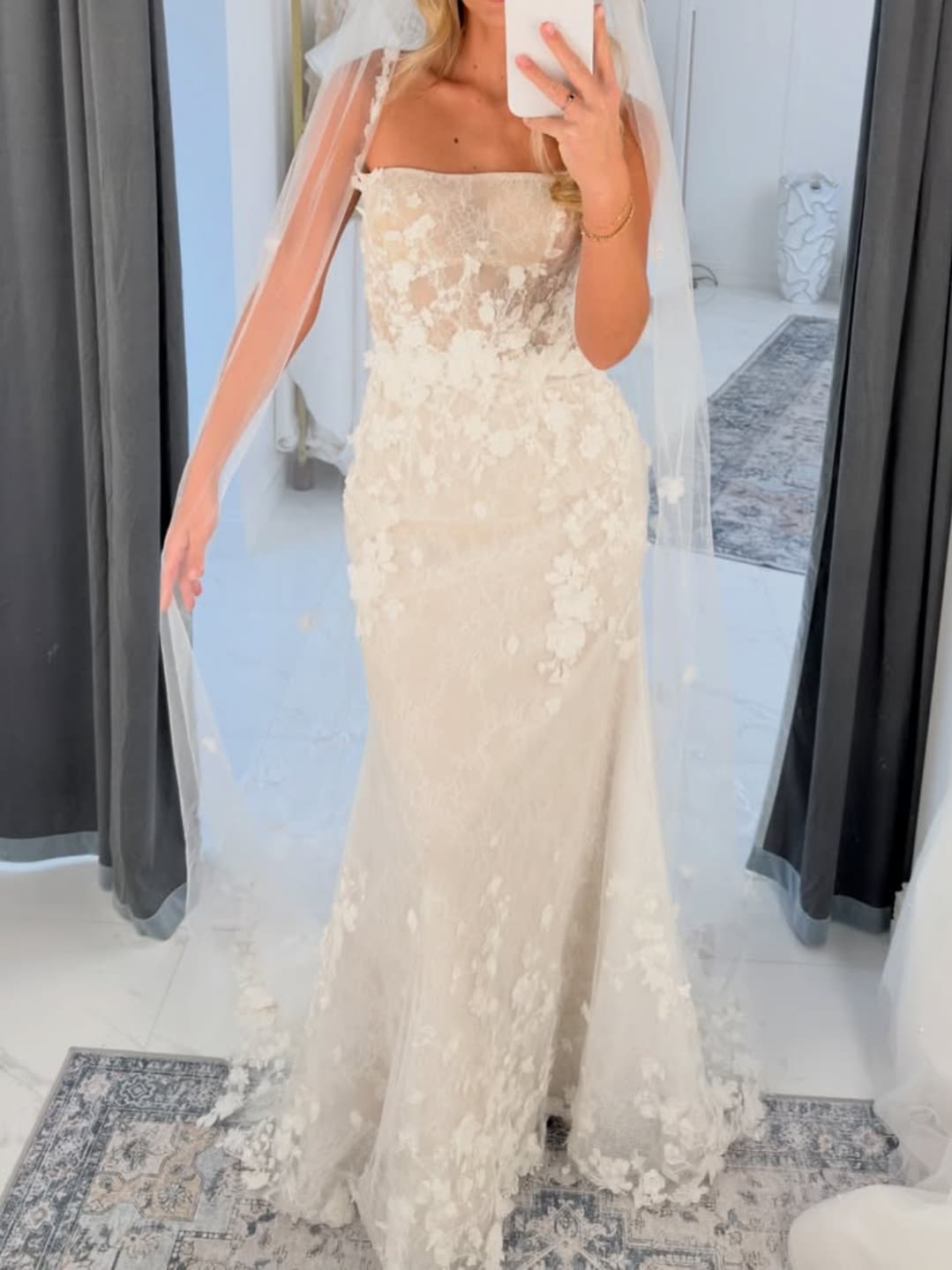 Ivory Lace Applique Mermaid Wedding Dress with Veil