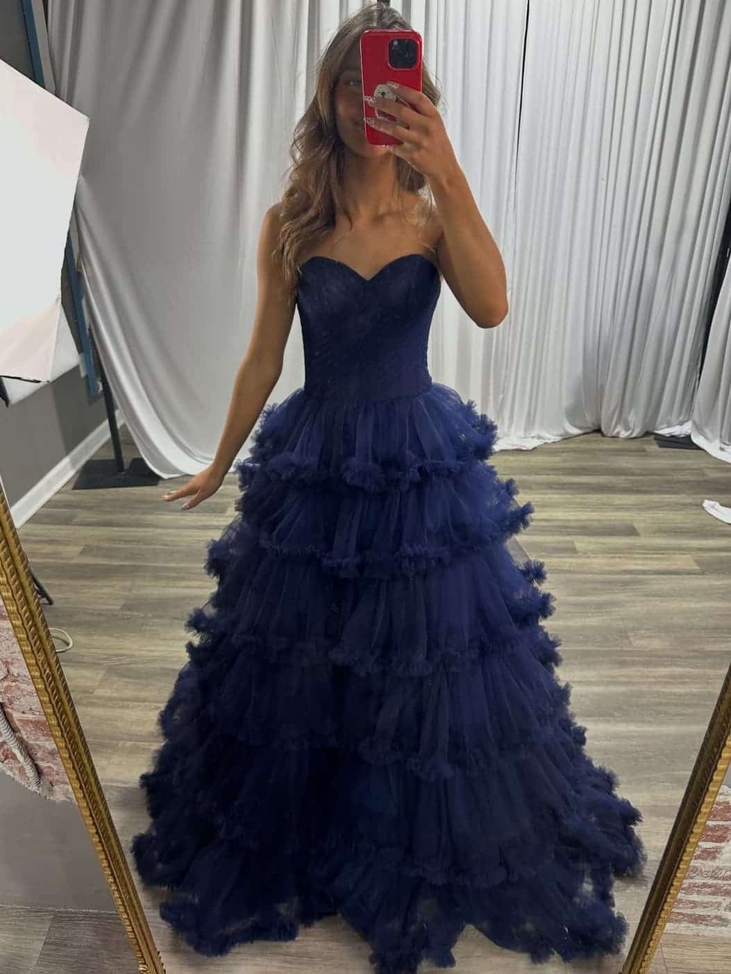 Layer Navy Blue Strapless A-Line Ball Gown