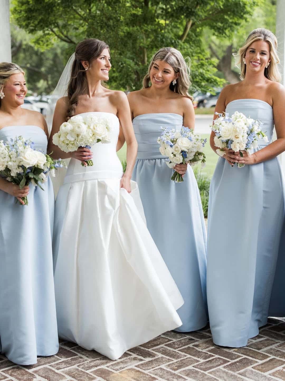 The epitome of classic simplicity. This light blue satin strapless bridesmaid dress offers a clean, elegant silhouette that is endlessly versatile, allowing each bridesmaid to shine with understated beauty alongside the bride.